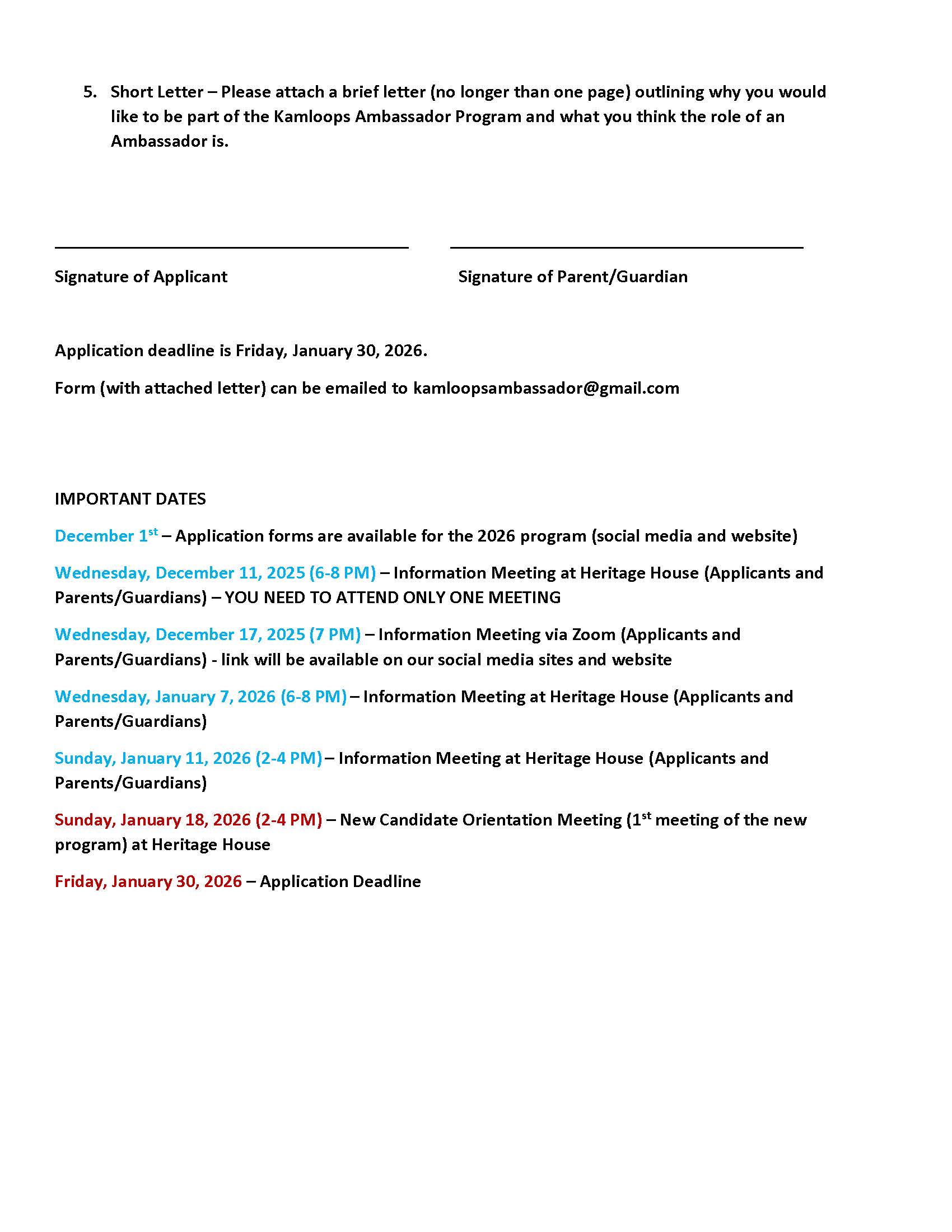 Sunday, January 11th, 2026– 2026 Candidate Information Meeting – Explore more about our program, meet our current Ambassador Team and past candidates. A great time to ask questions, see our 2026 candidate calendar, discover what classes and events are involved! Open to potential Candidates…Parents/Guardians are encouraged! Heritage House in Riverside Park.